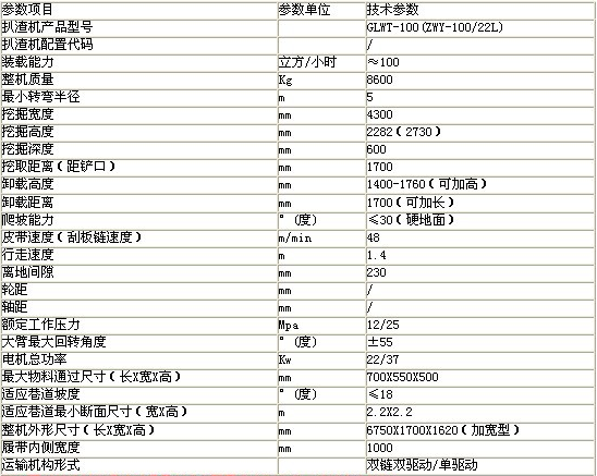履帶扒渣機(jī)GLWT-100(ZWY-100/22L)技術(shù)參數(shù):